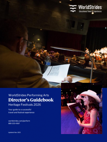 Saving your ensemble’s spot at one of our festivals is easy! Simply, complete your Letter of Understanding with your Performance Travel Specialist. You’ll indicate the festival destination, date, and traveler counts in this agreement. During the form process, you’ll view and agree to the trip terms and conditions. For full details on your festival experience, download your Director’s Manual below. Please understand that these are updated based on the year you are traveling with us.